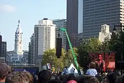 Springsteen performing "The Ghost of Tom Joad" at an early October 2008 Change Rocks voter registration rally on behalf of Barack Obama, on Philadelphia's Benjamin Franklin Parkway.