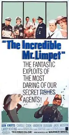 The Incredible Mr. Limpet is a 1964 American live-action/animated hybrid comedy film produced by Warner Bros.[1] and based on the 1942 novel Mr. Limpet by Theodore Pratt. It is about a man named Henry Limpet who turns into a talking fish and helps the U.S. Navy locate and destroy Nazi submarines. Don Knotts plays the title character. The live action was directed by Arthur Lubin, while the animation was directed by Bill Tytla, Robert McKimson, Hawley Pratt, and Gerry Chiniquy at Warner Bros. Cartoons. Music includes songs by Sammy Fain, in collaboration with Harold Adamson, including "I Wish I Were a Fish", "Be Careful How You Wish" and "Deep Rapture". The film received mixed reviews. It was the final project for Warner Bros. Cartoons prior to its closure in May 1963.