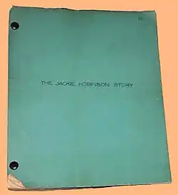 The Jackie Robinson Story is a 1950 biographical film directed by Alfred E. Green (who had directed The Jolson Story, "one of the biggest hits of the 40s")[4] and starring Jackie Robinson as himself. The film focuses on Robinson's struggle with bigotry abuse as he becomes the first African-American Major League Baseball player of the modern era. The film is in part based on Robinson's own autobiography, My Own Story.[5] The film is among the list of films in the public domain in the United States.[6]