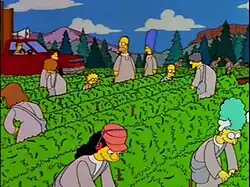 ![]() Various residents of Springfield being forced by the Movementarians into growing and harvesting lima beans. | |
