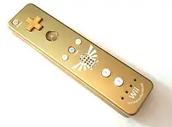 Multiple promotional elements were created: a five-part online comic was written and illustrated by Jerry Holkins and Mike Krahulik under their Penny Arcade Presents series, and television commercials featuring actor and comedian Robin Williams and his daughter Zelda were made, playing on the actor's stated love for the series.[41][42] Skyward Sword was released in all regions in November 2011.[43][44][45][46] The game was released as both a standard edition and a limited deluxe edition that included a gold Wii Remote Plus. An anniversary CD was included with both editions containing orchestrated versions of various iconic musical pieces from the series.[28] Following its release, a glitch was discovered that corrupted save files if three late-game events were taken in a certain order. Once revealed, Nintendo issued instructions on avoiding it and set up a special channel on their Wii site in Japan to gain feedback, along with offering to manually repair corrupted save files.[47][48] The game was later re-released for the Wii U via the Virtual Console on September 1, 2016, as part of the series' 30th anniversary celebrations.[49][50]
