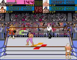 Adding coins to increase "health" did little to revive the player's wrestler after a lengthy beating or even increase his chances of kicking out of a pin. Also, as the game progressed, the computer opponents became more difficult to beat, the CPU's illegal partner constantly breaking the player's pins and submissions. However, pinfall victories in these harder levels can still be achieved after performing a certain number of pin attempts. If the players move all the way up the ranks and win the Championship Title they defend it against the computer who becomes even more difficult.