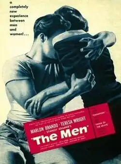 The Men is a 1950 American drama film. Set mostly in a paraplegic ward of a VA hospital, the film stars Marlon Brando (in his film debut) as an ex-GI named Ken who, as a result of a war wound, is paralyzed and uses a wheelchair. Suffering from depression and an impaired self-concept, Ken struggles to come to terms with his disability and his need to accept care from others, including from his fiancée/wife.