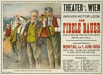The Merry Farmer (German: Der fidele Bauer) is a German-language operetta composed by Leo Fall with a libretto by Viktor Léon. It premiered at the Mannheim Hoftheater on 27 July 1907 and was Fall's first major hit.[1] It transferred to the Theater an der Wien in June 1908, and to the Theater des Westens, Berlin, in October 1908.[2]