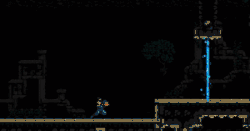 The game initially presents itself as a linear level-based adventure split across two eras; the past, which is presented with 8-bit graphics and audio, and the future, which uses a 16-bit presentation.[2][5][7] Later on, The Messenger becomes a Metroidvania-style game, in which the player revisits both eras in any order and direction in order to find key items.[1][8] In this section, the player can use special warps to move between the past and present, changing the layout of each level and allowing them to access new areas.[2][9] In addition to the main story, green medallions are hidden inside the levels as optional objectives, and players gain a reward by collecting all 45.[7][8]