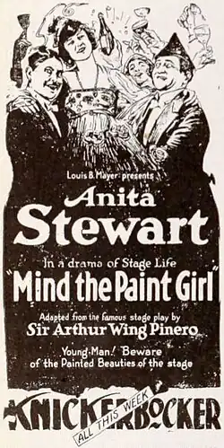 The Mind the Paint Girl is a 1919 American silent romantic drama film directed by Wilfrid North based upon the play of the same name by Arthur Wing Pinero and starring Anita Stewart. Stewart produced along with the Vitagraph Company and released through First National Exhibitors.[1]