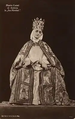 Sister Beatrice was produced by Vsevolod Meyerhold at the Moscow Arts Theatre in 1906,[18] a production which Reinhardt may possibly have been aware of. Maeterlinck's play was also produced in March 1910 at the New Theatre, New York, with Edith Wynne Matthison in the title part.[19]