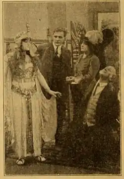 The writer of the scenario is unknown, but it was most likely Lloyd Lonergan. He was an experienced newspaperman employed by The New York Evening World while writing scripts for the Thanhouser productions.[4] The film director is unknown, but it may have been Barry O'Neil or Lucius J. Henderson. Cameramen employed by the company during this era included Blair Smith, Carl Louis Gregory, and Alfred H. Moses, Jr. though none are specifically credited.[5] The role of the cameraman was uncredited in 1910 productions.[6] According to Bowers the cast credits are unknown, but many Thanhouser productions are fragmentary.[5] Though a production still shows William Russell in the film.[7] In late 1910, the Thanhouser company released a list of the important personalities in their films. The list includes G.W. Abbe, Justus D. Barnes, Frank H. Crane, Irene Crane, Marie Eline, Violet Heming, Martin J. Faust, Thomas Fortune, George Middleton, Grace Moore, John W. Noble, Anna Rosemond, Mrs. George Walters.[8]
