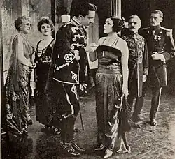 In the midst of the gaiety, a Bolshevik mob led by Orel Kosloff (Stuart Holmes) invades the palace to ruthlessly kill and plunder, leaving the palace in ruins. Kosloff is actually a tool of an uninvited guest, Theo Kameneff (Charles Gerard), who is only a pretend Red, being paid by a foreign government to ruin Russia. The Prince makes one gallant fight after another to save Marie, and finally succeeds in sending her away in a carriage, but loses track of her as he makes his own escape.