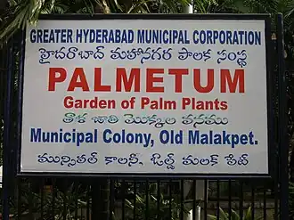 The Palmetum is a specialized botanical garden located in the Malakpet area, Hyderabad, in Telangana, which features only one family of plant: the palms.