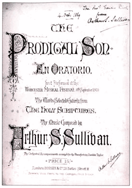 The Prodigal Son is an oratorio by Arthur Sullivan with text taken from the parable of the same name in the Gospel of Luke. It features chorus with soprano, contralto, tenor and bass solos. It premiered in Worcester Cathedral on 10 September 1869 as part of the Three Choirs Festival.[1]