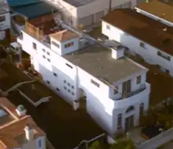The $2 million (1993 dollars), three-story, 4,520-square-foot (420 m2), four bedroom, four bathroom house is located at 30 30th Avenue in Venice Beach,[6][7] one block east of the beach. According to the owner, after the filming of the series was complete, the interior and exterior of the house were repainted back to their original pink color. The only room not to be repainted was the room that was renovated into the Confessional room, which was painted blue with white clouds for the filming of the series. When the current owners purchased the house in 1996, the house was painted light blue/gray with a white trim and the interior pink carpeting was changed to gray. A sign outside the house read: