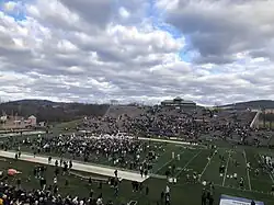 The aftermath of the 160th meeting of The Rivalry with Lehigh students storming the field after a win