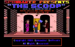 The Scoop is a mystery adventure game published by Telarium, a subsidiary of Spinnaker Software, in 1986 for Apple II and rereleased by Spinnaker Software in 1989 for DOS.[1] The plot is based on the collaborative detective novel of the same name, written in 1931 by Agatha Christie, Dorothy L. Sayers, E. C. Bentley, Anthony Berkeley, Freeman Wills Crofts, and Clemence Dane.