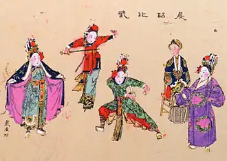 In an 1883 reprint by Wenya zhai (文雅齋)[14] the novel was renamed to The Three Heroes and Five Gallants, with the "three heroes" being actually four people, namely Zhan Zhao the "Southern Hero", Ouyang Chun the "Northern Hero", and the Ding twins or "Twin Heroes".[15]