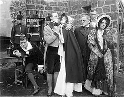 ![]() from left to right: Sidney Olcott, George Melville, Alice Hollister, Arthur Lester, J.P. McGowan and Gene Gauntier. | |
