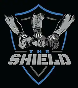 The Shield[7] was a professional wrestling stable in WWE that consisted of Dean Ambrose, Roman Reigns, and Seth Rollins.[8] The group debuted on November 18, 2012 at the Survivor Series pay-per-view.[5] The Shield was a dominant force in six-man tag team matches with an undefeated televised streak lasting from December 2012 to May 2013, during which they scored a victory at WrestleMania 29. In May 2013 at Extreme Rules, all three members of The Shield won a championship, with Ambrose winning the United States Championship while Rollins and Reigns captured the WWE Tag Team Championship. Rollins and Reigns were WWE Tag Team Champions until October 2013, and Ambrose was United States Champion until May 2014, which was a record reign for the WWE version of the championship.[9][10] As a Shield member, Reigns gained prominence by setting and equaling elimination records at the 2013 Survivor Series and the 2014 Royal Rumble events.[11][12]