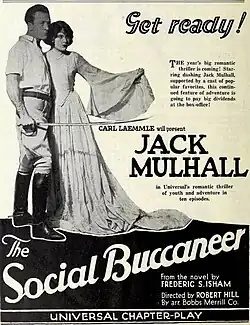 The Social Buccaneer is a 1923 American film serial directed by Robert F. Hill. The serial consisted of ten episodes and was based on the novel of the same name by Frederic S. Isham. The Social Buccaneer is now considered to be a lost film.[1][2]