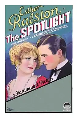 The Spotlight is a 1927 American silent comedy film directed by Frank Tuttle, written by Hope Loring, Herman J. Mankiewicz and Rita Weiman, and starring Esther Ralston, Neil Hamilton, Nicholas Soussanin, Arlette Marchal and Arthur Housman. It was released on November 19, 1927, by Paramount Pictures.[1][2][3]