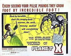 The Strange World of Planet X (U.S. title: Cosmic Monsters) is an independently made 1958 British second feature ('B')[2] science fiction horror film directed by Gilbert Gunn and starring Forrest Tucker and Gaby André.[3] It was adapted by Paul Ryder and Joe Ambor from the 1957 Rene Ray novel of the same name, produced by George Maynard and John Bash and distributed in the UK in February, 1958[1] by Eros Films. It was released in the US on July 7, 1958 by Distributors Corporation of America as a double feature with The Crawling Eye, also starring Tucker.[1]