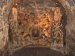 The coat or arms from the front of the Tholsel now stored in the crypt of Christchurch cathedral.