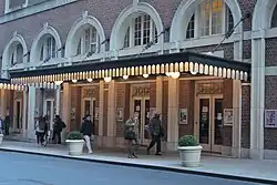 The NYU Club continued to occupy Town Hall's upper-story clubhouse space until 1989 when it filed for bankruptcy.[187] The clubhouse space was leased the following to the New Yorker Club, a majority-minority social club, which raised $800,000 to renovate the clubhouse space.[188][189] The Town Hall Foundation received a $281,000 grant in 1992 to fund the restoration of Town Hall's marquee. The architect Bonnie Roche was also hired to replace the doors, add information kiosks, and make the venue wheelchair-accessible.[190] Town Hall had become profitable by the late 1990s, with an attendance of 400,000 in 1996. The Town Hall Foundation was raising money for a roof replacement, seat refurbishment, and repainting of the interior.[152] The foundation also wanted to produce its own events, so it started raising funds for a sound system, and it also sought to create a chamber orchestra and host a festival of foreign films.[117][152]