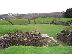 Remains of the Roman amphitheatre at Caerleon, perhaps the oldest purpose built theatrical space in Wales