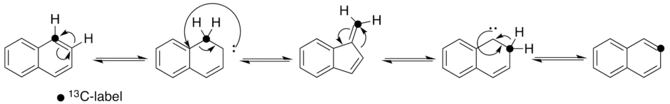 The first proposed mechanism for a thermal rearrangement of an aromatic compound was for the automerization of naphthalene. It was suggested that the rearrangement of naphthalene occurred due to reversibility of the isomerization of azulene to naphthalene.[2][3] This mechanism would therefore involve an azulene intermediate and is depicted below: