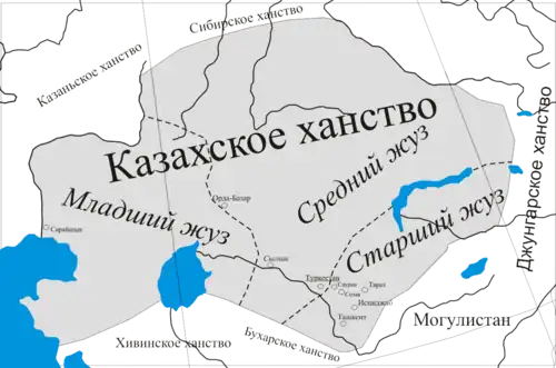 ![]() Kazakh Khanate Maximum Extent in 1520 CE | |||||||
