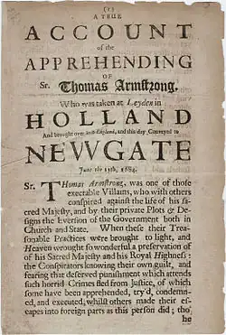 - ^ Drabble, James. "Two Perspectives on the Execution of Sir Thomas Armstrong (1684): Tory Triumphalism and Dutch Distaste" (PDF). University of Oxford. p. 230. Retrieved 31 March 2023.