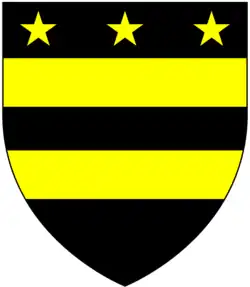 Arms of Freke: Sable, two bars or in chief three mullets of the last