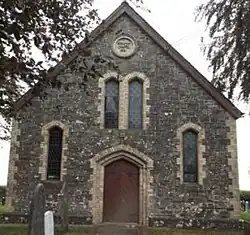 The parish church, dedicated to St Peter, is in the hamlet of Thornbury and has a fine Norman south doorway dated to around 1150. Although most of the rest of the fabric dates to the early 14th century, it was partly hidden by a heavy restoration in 1876 during which the tower was also increased in height by five feet.[3][4] In the churchyard there is an arch which used to lead to the village pound where stray animals were kept.[2] In 2014 a group of volunteers photographed and transcribed all of the gravestones and inscriptions in and around both the Church and Chapel. The results are available here.