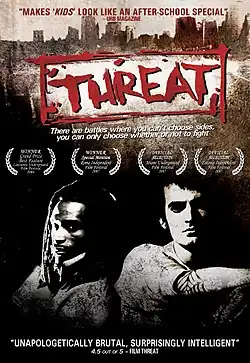 Threat (2006) is an independent film about a straightedge "hardcore kid" and a hip hop revolutionary whose friendship is doomed by the intolerance of their respective street tribes. It is an ensemble film of kids and young adults living in the early-to-mid-90s era of New York City's all-time highest ever murder rate, each of them suffering from a sense of doom brought on by dealing with HIV, racism, sexism, class struggle, and general nihilism.