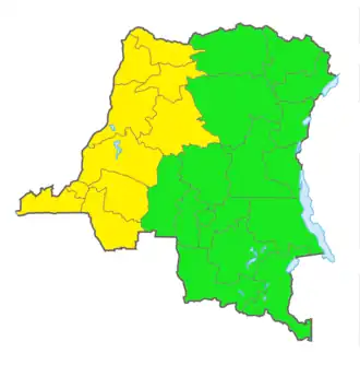The Democratic Republic of the Congo observes UTC+01:00 (West Africa Time) and UTC+02:00 (Central Africa Time).[1] It does not observe DST.[2] It is the only country in Africa to use more than one time zone.