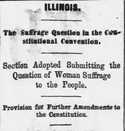 - ^ "State Suffrage Association". Chicago Tribune. February 8, 1872. p. 2. Retrieved October 27, 2020 – via Newspapers.com.