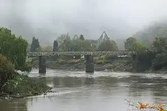 Until the early 19th century, the local roads were rough and dangerous and the easiest access to the site was by boat. Samuel Taylor Coleridge, while trying to reach Tintern from Chepstow on a tour with friends in 1795, almost rode his horse over the edge of a quarry when they became lost in the dark.[40] It was not until 1829 that the new Wye Valley turnpike was completed, cutting through the abbey precinct.[41] In 1876 the Wye Valley Railway opened a station for Tintern. Although the line itself crossed the river before reaching the village, a branch was built from it to the wireworks, obstructing the view of the Abbey on the road approach from the north.