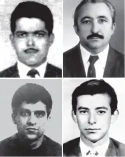 | Some of MRT's prominent militants, killed and disappeared during the military dictatorship. From left to right, clockwise: Devanir José de Carvalho, Joaquim Alencar de Seixas, Dimas Antônio Casemiro, Aderval Alves Coqueiro. | |