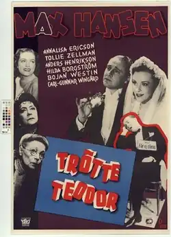 Tired Theodore (Swedish: Trötte Teodor) is a 1945 Swedish comedy film directed by Anders Henrikson and starring Max Hansen, Annalisa Ericson and Tollie Zellman.[1] It was shot at the Sundbyberg Studios in Stockholm. The film's sets were designed by the art director Max Linder. It is based on the 1913 German play of the same title by Max Ferner and Max Neal which has been adapted for the screen a number of times.