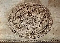The epigraphic medallion in the apex of the dome has arabesque borders and, in the center, a 12-pointed star with medallions.[13]