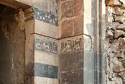 There are eight surviving inscriptions in the building,[13] all Qur’anic and in naskh script. Five are made in carved stucco, two in stone (one carved and one inlaid) and one in tile mosaic.