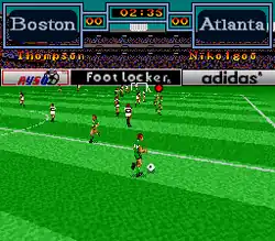 Mode 7 is used to achieve a pseudo-3D effect similar to that of Sculptured Software's previous NCAA Basketball. There are various options and features, including a variety of soccer formations, corner kicks, and the ability to alter each team's roster.