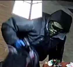 In every robbery, the bandit was heavily disguised in a mask, coat, and sometimes gloves.[1] He would enter the banks when they were about to close, walk behind or jump over the counter, and threaten the employees with a black handgun, which he held in his right hand.[3] He then demanded that the employees help him put money from the vault or teller drawers into his bag or backpack.[4] He asked the employees to point out bait money and dye packs, two security measures which could be used by law enforcement to track him down. Then, he orders the workers to lie on the floor as he flees the scene.[5]