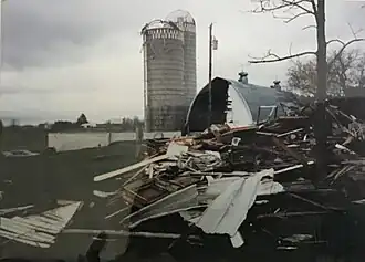 ![]() Damage to the Kahl Farm in Prairie Farm, Wisconsin | |