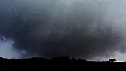 The first complex of storms had emerged by 10:25 a.m. Central Daylight Time (UTC–5) over southern Kansas and northeastern Oklahoma, which moved into a region of high atmospheric stability and strong convective inhibition, with a minimal severe hazard risk expected to be limited to small hail up to 1.25 in (3.2 cm).[29] The Storm Prediction Center was expecting the formation of an intense squall line to initiate between 3 and 5 p.m. that afternoon.[30] In the evening, a PDS tornado watch was issued for an area in the Mississippi Valley, with severe thunderstorms expected to develop in conditions primed for supercells capable of producing strong, long-track tornadoes.[31] As forecast, numerous supercells began developing across the main risk area, and numerous tornadoes occurred, some of which were long-tracked, and strong to violent.[32]