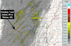 Rotational tracks of supercells moving into Arkansas
