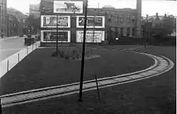 McCaul is an anticlockwise loop northeast of McCaul Street and Stephanie Street. It is the western terminus of the 502 Downtowner and a turnback point for the 501 Queen in either direction. Streetcars travelling both ways on Queen can turn north onto McCaul and then can turn into the loop, exiting onto McCaul southbound to return to Queen either eastbound or westbound. The loop was originally in the open air, but was covered when the Village by the Grange mixed-use development was built over it in 1976.[7] The minimum radius of curvature for this loop is 13.7 m (45 ft).[2]