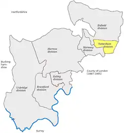 UK House of Commons seat Tottenham (first creation) created in 1885, before 1918 abolition, excluding Bethnal Green, Hackney, Shoreditch, and Tower Hamlets small exclaves.Map that gives each named seat and any constant electoral success for national (Westminster) elections for Middlesex, 1955 to 1974.