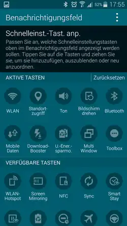 The control menu of the Galaxy Note 3 features 23 quick toggles. The "download booster" feature, initially featured on the Galaxy S5, was retrofitted with the Android 4.4.2 update.
