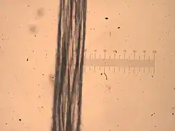 Single olonā fiber (0.3 mm wide)