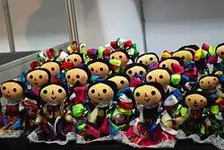 When Barbie was introduced to Mexico, it quickly replaced the traditional dolls, such as the Lupita dolls made of cartonería.[16] However, there are various artisans who still make dolls from various materials by hand, often updating designs. Blanca Molina designs about fifty different kinds of dolls each year, and herself makes about 200 that are generally sold in specialty stores.[27] Ana Karen Allende is a doll maker in Mexico City, whose works include traditional forms but her most popular items include male and female lucha libre wrestlers as well as aluxes, chaneques, calacas, and Mayan guardian figures. Each creation is unique with no two exactly alike.[28][29] The Miss Lupita project, headed by Carolina Esparragoza received government funding to hold workshops and other events with the aim of reviving the tradition of making the dolls in Mexico City, with new designs.[30]